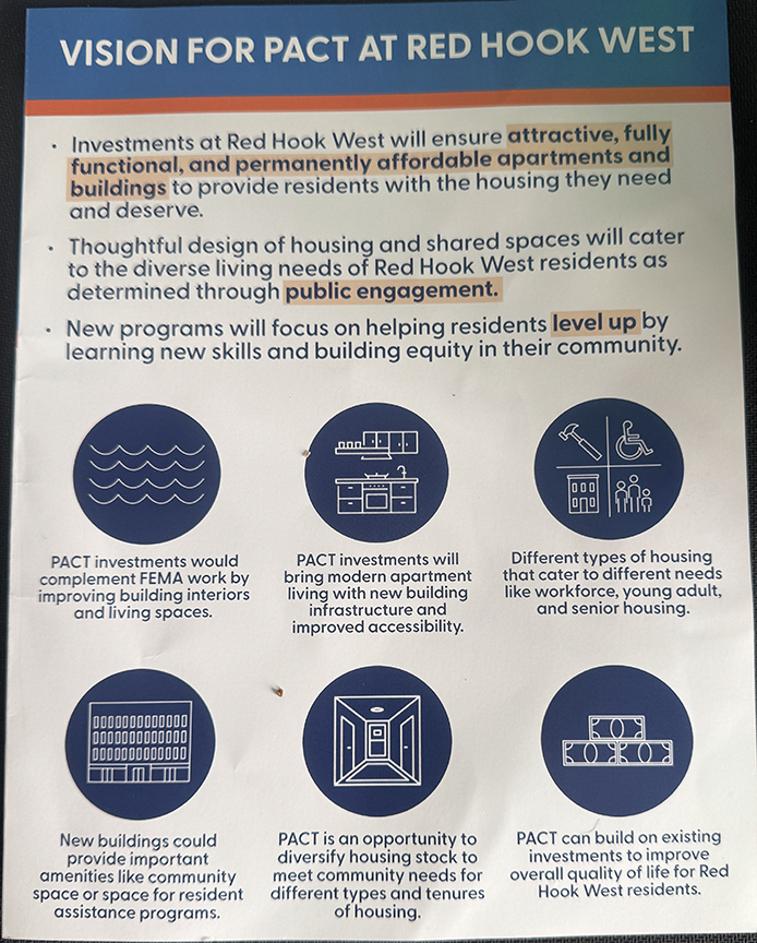 The Dare to Struggle organizer said that Red Hook West should be vigilant about whether it’s getting to vote on a PACT conversion and if the scope of work addresses building infrastructure, such as exterior walls, water and heating systems.