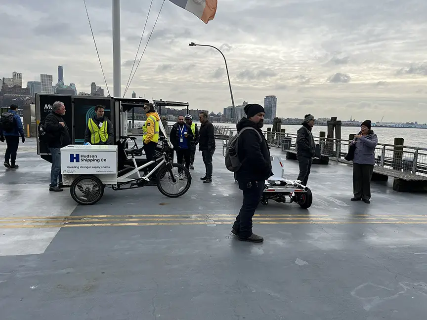 In attendance was Red Hook’s own long-time short-sea shipping advocate Jim Tampakis, owner of Marine Spares International, as well as micromobility experts like Stuart Hyden and Mark Chiusano from Net Zero Logistics, and Hudson Shipping Co.